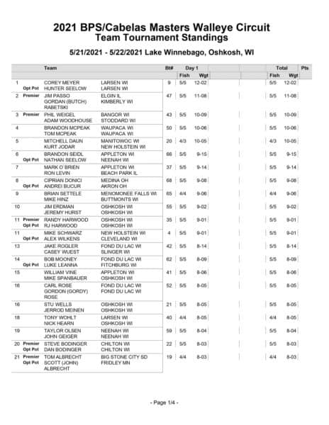 Day 1 weigh-in at Lake Winnebago