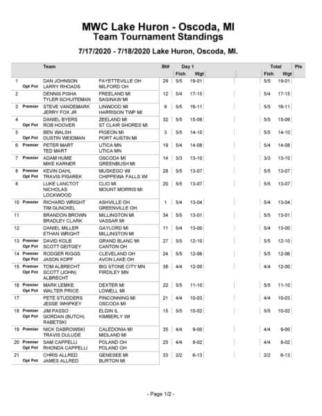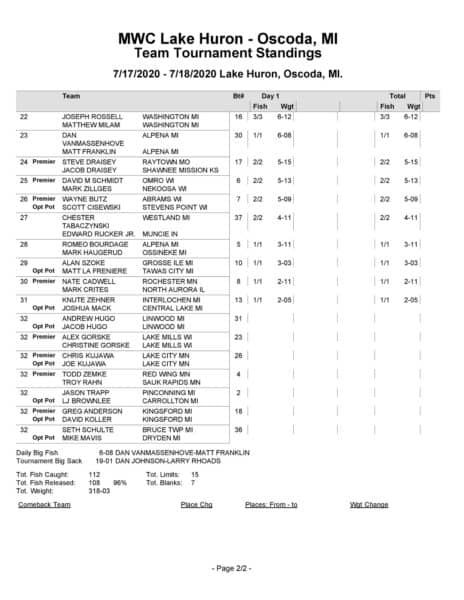 MWC Day 1 Lake Huron Results