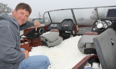 Sometime during the previous night, another angler-who wishes to remain anonymous-filled Gaikowski’s 620 Ranger with foam packing peanuts. Reportedly, it was retribution for a prank Gaikowski pulled several years ago by unhooking the angler’s trailer from his truck-a trick that wasn’t discovered until the unwitting angler reached the boat landing without his boat.