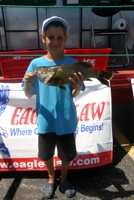 The air temperature was in the upper 80’s and most of the local lakes and rivers had water temperatures over 80 degrees, but the children still caught lots of fish. The tournament had six fish categories; bass (both kinds), walleye/sauger, catfish, panfish, trout, and roughfish. Trophies and a rod and reel combo were given the first place winners and second place finishers also received a trophy. All teams received a “goodie bag” when they registered with fishing gear, DNR materials to read and look over, and a cap for the event.
