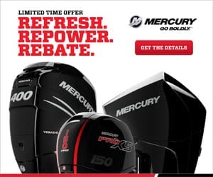 In response to the unprecedented challenges currently facing boaters, Mercury is offering rebates up to $1,500 and optional delayed delivery of repower outboards purchased April 27 through May 9, 2020. Outboards qualifying for rebates include 40hp – 400hp Verado, FourStroke, Pro XS and Jet models, as well as 9.9hp and 15hp ProKickers. The powerful and popular Mercury V8 and V6 outboards are included!