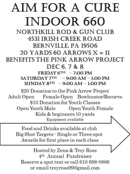 Same weekend every year, don’t miss out on this event. All donated to Pink Arrow Project. Mark your calendar and save the days to join the fun. Sponsors so far Pretty Hunter USA, Weaknecht Archery, Ross Hollow Ranch and Subway.