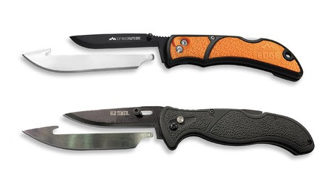 The Outdoor Edge RazorLite EDC (orange) on top and the American Outdoor Brands Old Timer knife (black) on bottom.